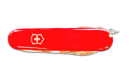 オフィサーナイフはビクトリノックスの代表的なモデルで、そのラインナップの「トラベラー」は大小ブレード(刃)、缶切り、栓抜き、コルク抜きなど、トラベルに必要な機能を全て備え、特に、定評のあるハサミの付いているモデル。